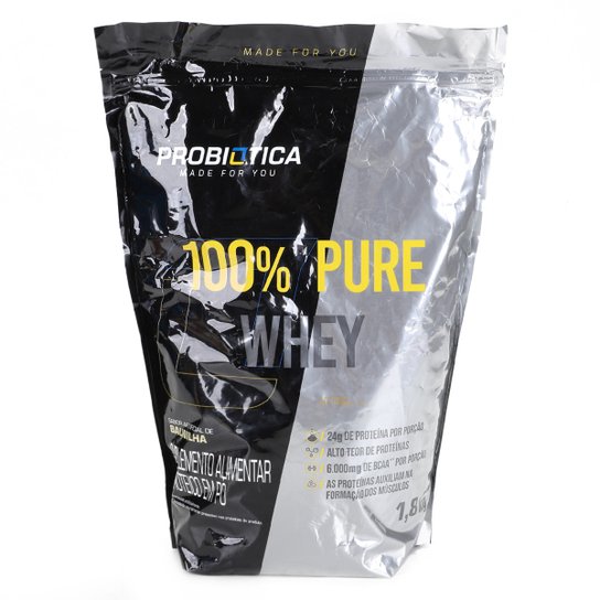 Desenvolvida para suplementar a dieta proteica de atletas que sofrem grandes desgastes nos treinos, abastecendo os tecidos musculares para uma melhor construção muscular. o 100% Pure Whey da Probiótica é perfeito na é perfeito na síntese de proteínas para formar mais músculos, como também ajuda na imunidade e melhora a saúde óssea. Composto basicamente por proteína concentrada do soro do leite (whey protein concentrate), matéria-prima elaborada com alta tecnologia e com elevada concentração de aminoácidos. De preparo instantâneo, 100% PURE WHEY® é indicado para ser tomado antes e/ou após os exercícios.