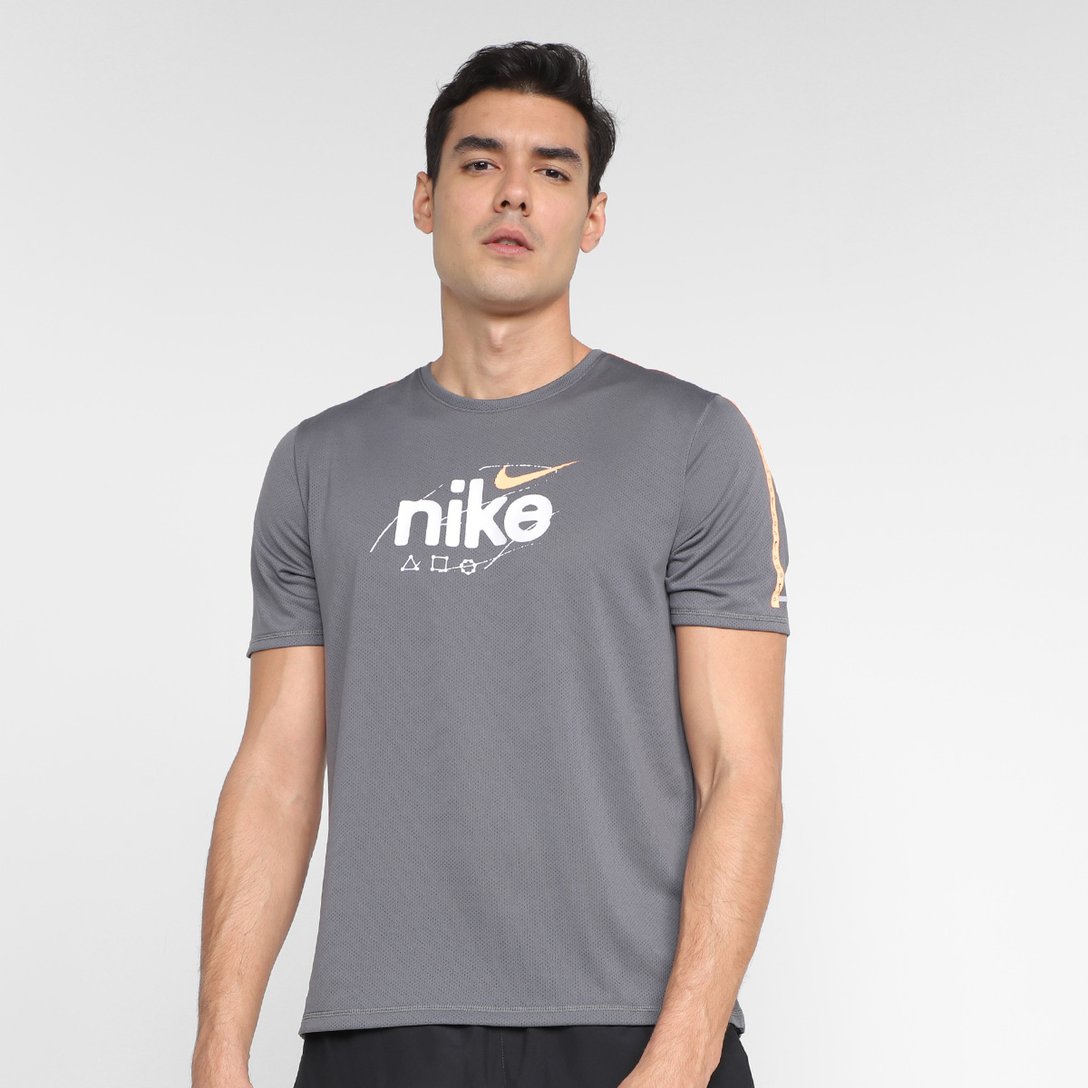 Confeccionado em tecido tecnológico que afasta o suor e mantém a pele seca por mais tempo, a Camiseta Nike Dri-Fit Miler Masculina é a escolha para complementar o sportwear com estilo e conforto. Essa camiseta masculina ainda conta com estampa estilizada, logo em destaque para autenticidade e ponto refletivo para segurança nas corridas noturnas. Peça já e se desafie no esporte com a Nike!