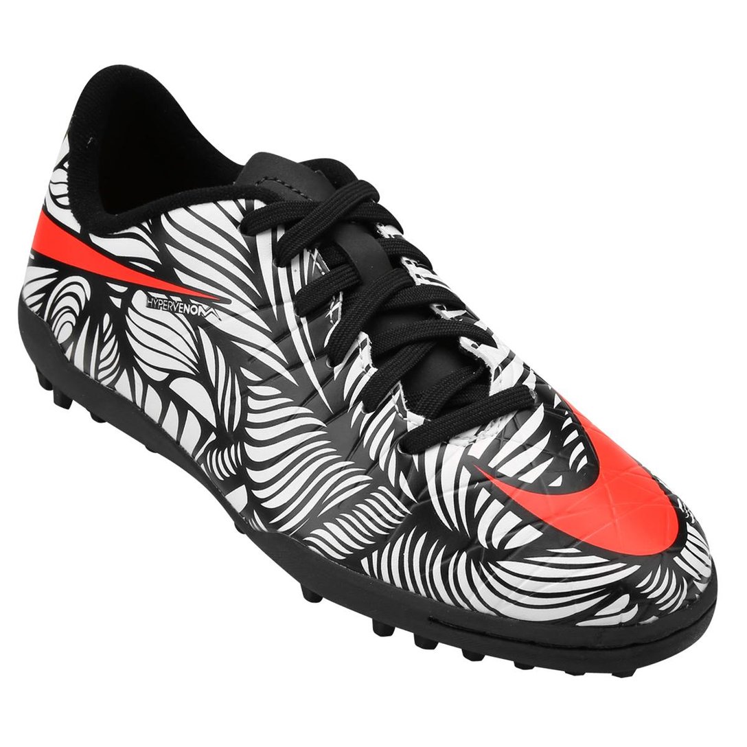 A Chuteira Nike Hypervenom Phelon 2 NJR TF Society Infantil é a parceira ideal para os pequenos boleiros que se inspiram no craque Neymar. Oferece chutes mais precisos e tração nos gramados.