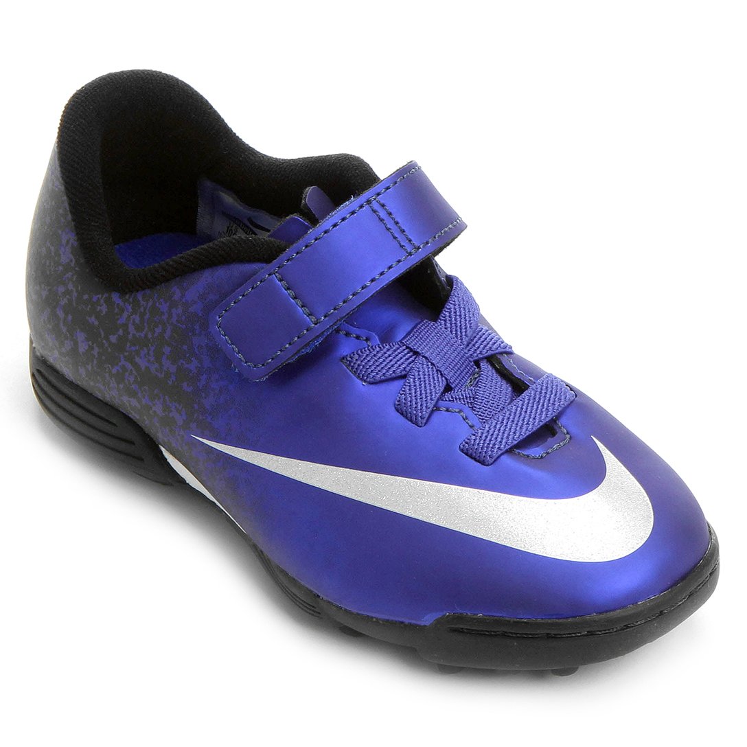 A Chuteira Nike Mercurial Vortex 2 (V) CR7 TF Society Infantil é a parceira ideal para fazer os pequenos boleiros e fãs do craque Cristiano Ronaldo brilharem nos gramados sintéticos.