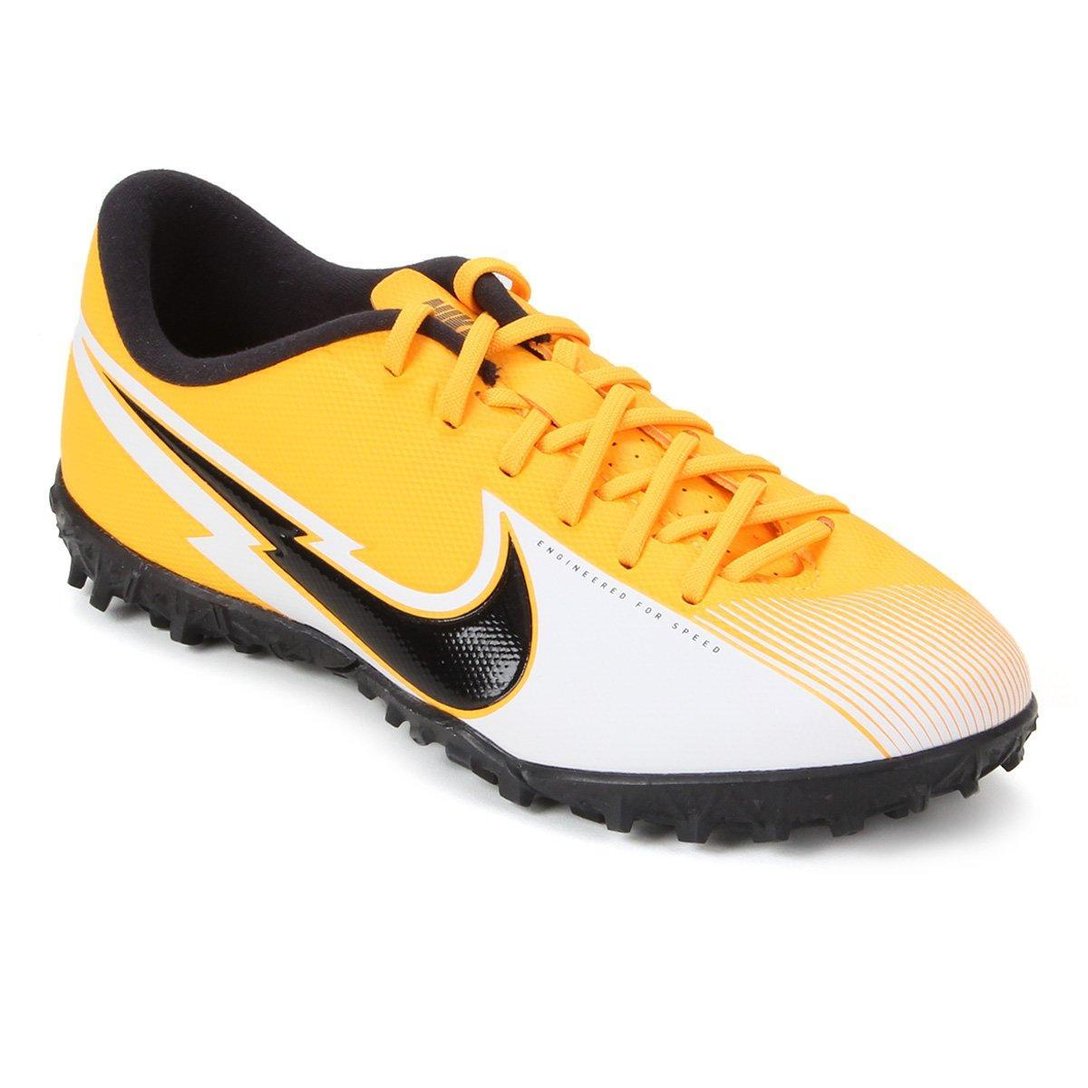 O produto "Chuteira Society Infantil Nike Mercurial Vapor 13 Academy TF - Laranja+Preto" acabou.
