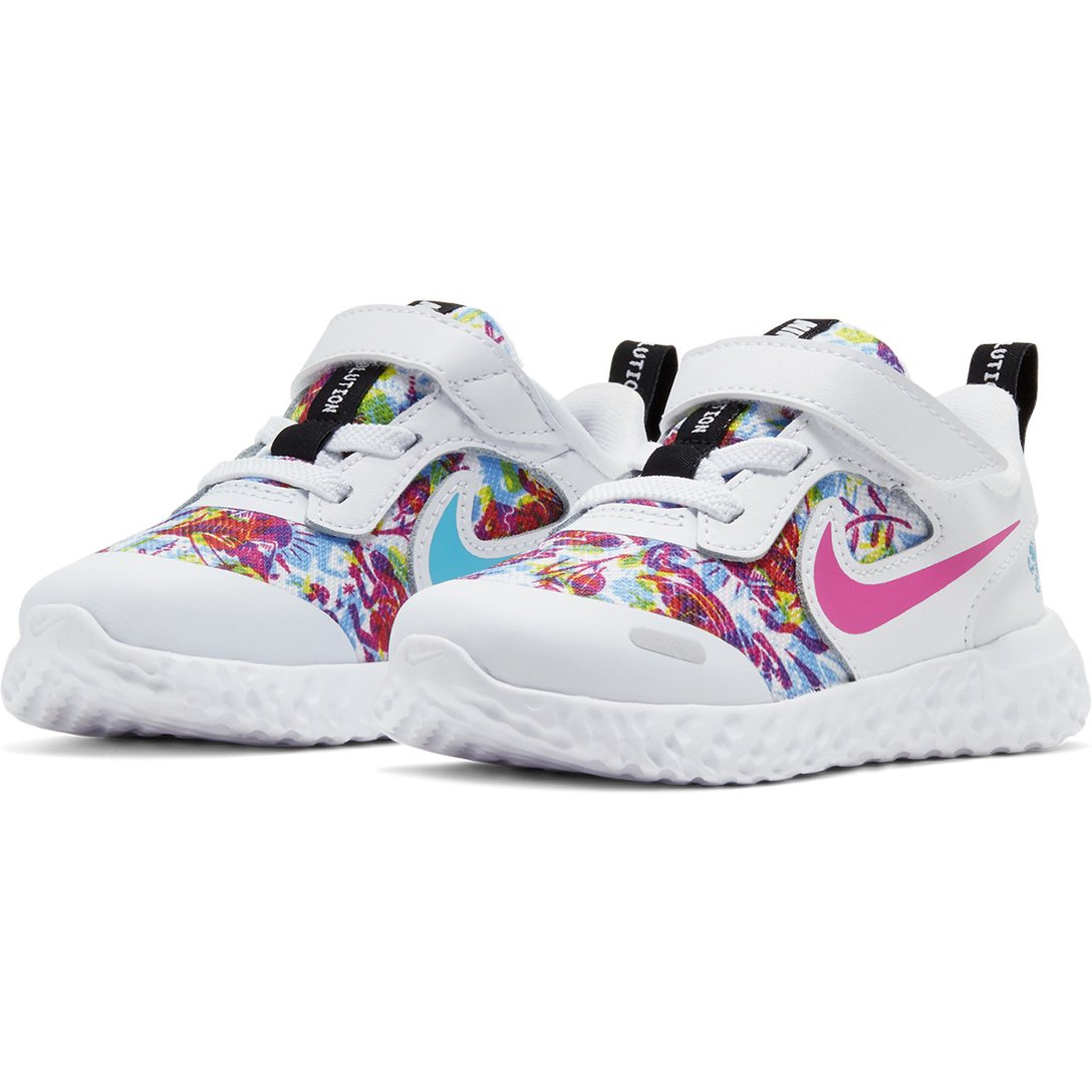Nike Revolution 5 Fable coloca um estilo divertido e original nos pés da criançada com o design multicolorido inspirado nos caleidoscópios. Em design leve com espuma na região do calcanhar, o modelo garante máximo conforto, além de contar com cadarço elástico e puxador para maior praticidade no calce.