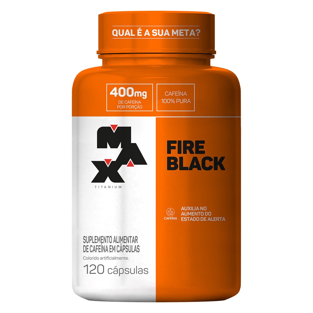 O Termogênico Ultimate Fire Black 120 Cáps - Max Titanium é um suplemento alimentar termogênico à base de cafeína e maltodextrina. A porção de 2 cápsulas fornece 420mg de cafeína.